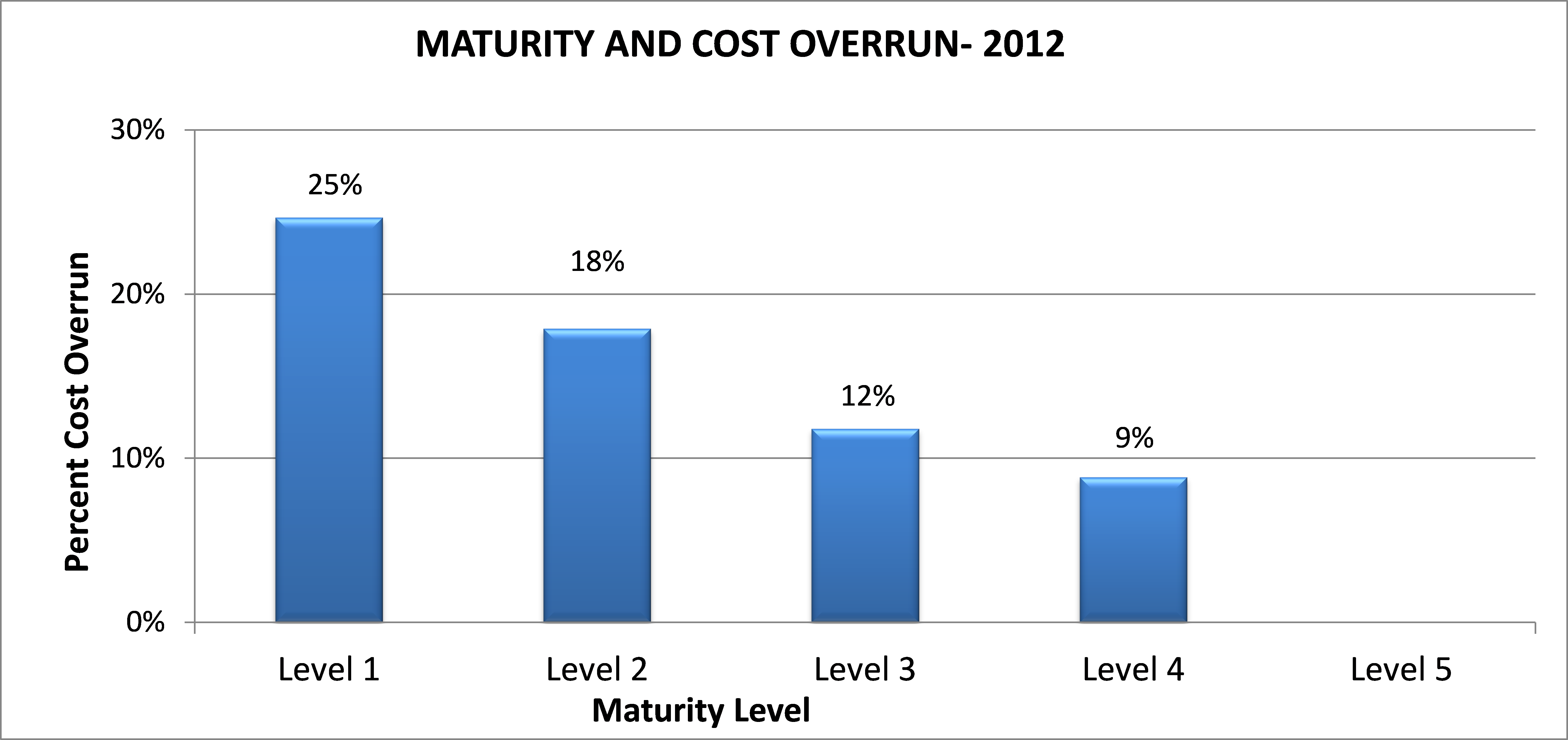Figure 3: Project Cost Overrun versus Maturity Levels.