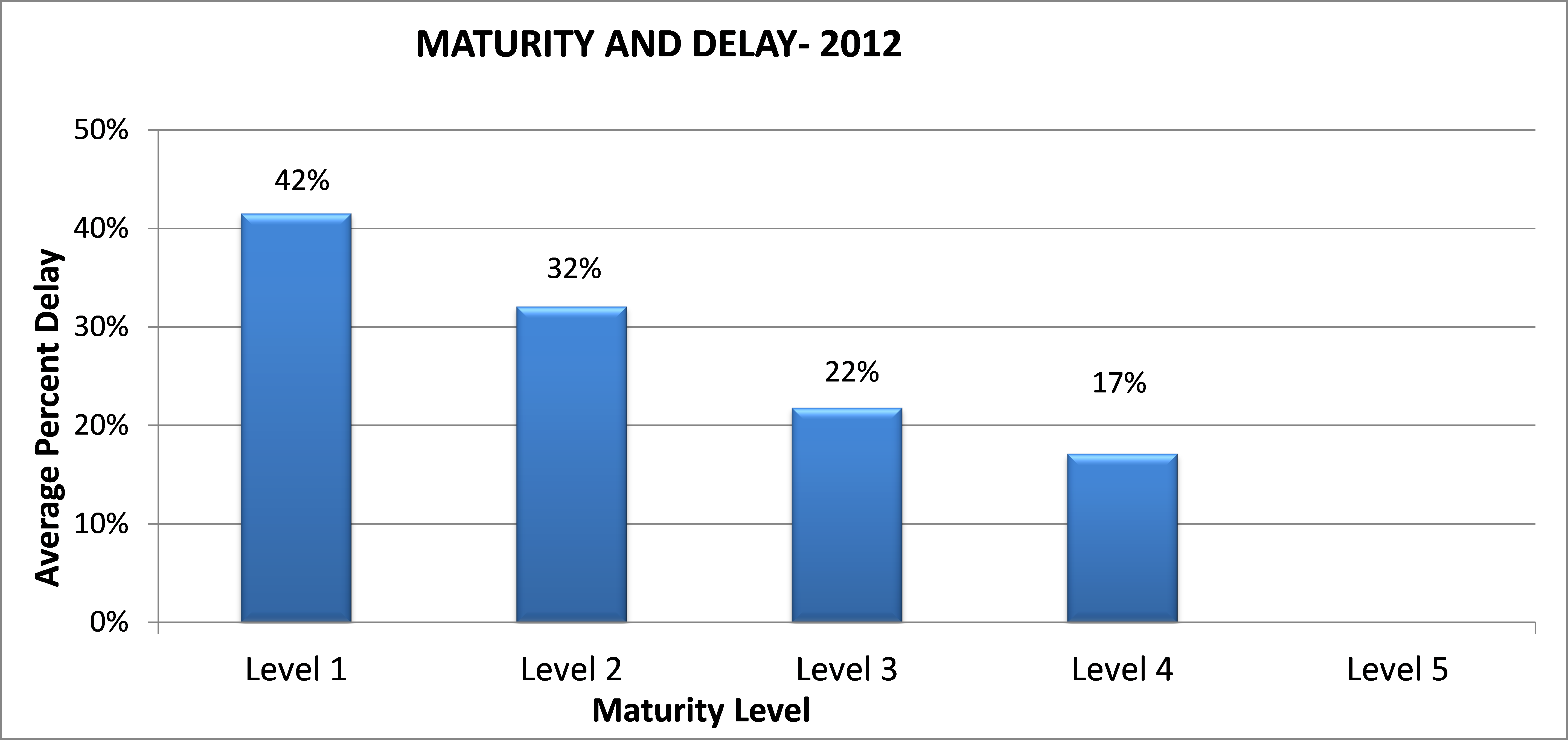The relationships between project delay and PM maturity levels are shown in Figure 2: