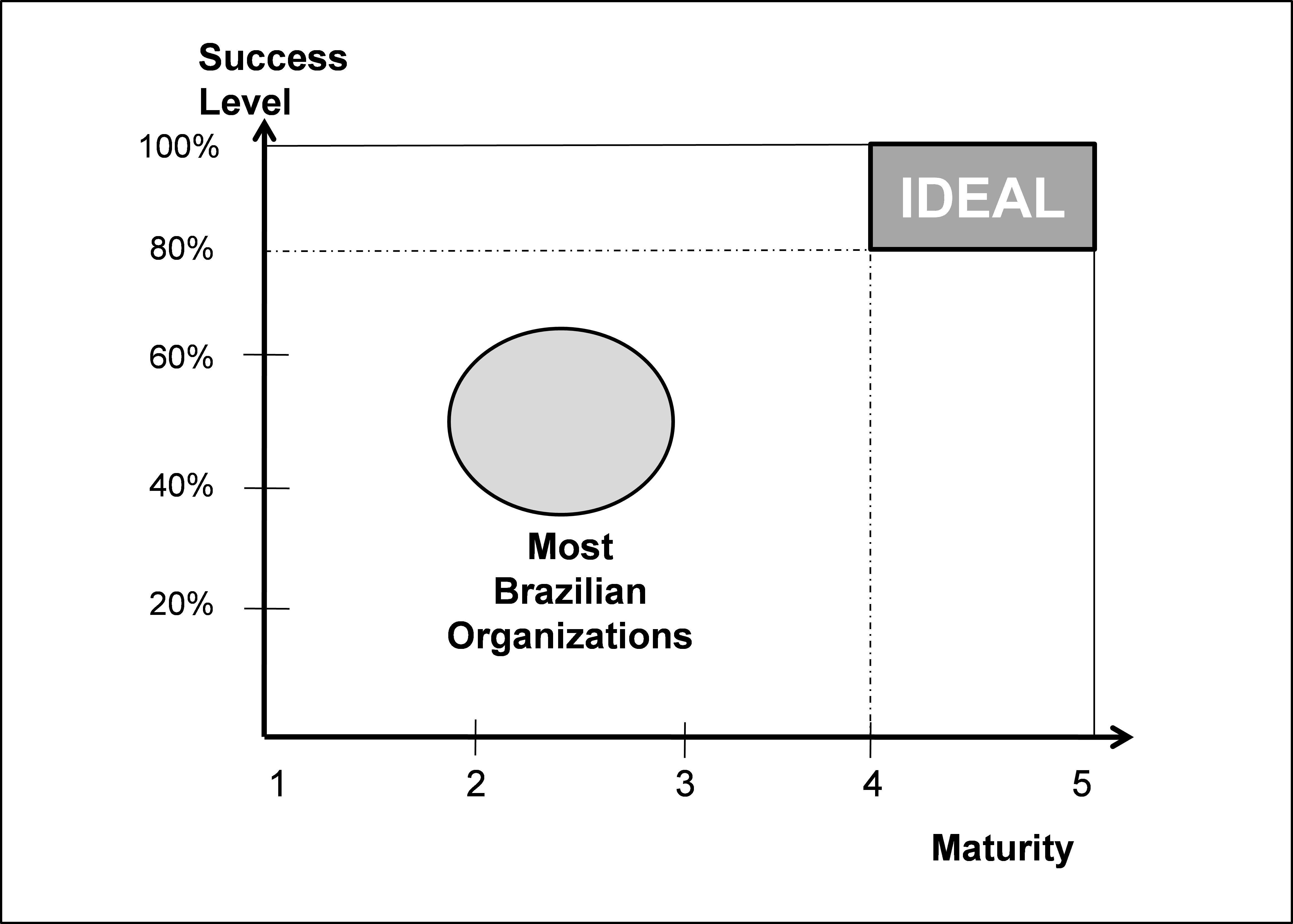 Figure 6. Average Project Success Level versus PM Maturity Level in Brazil-2012.