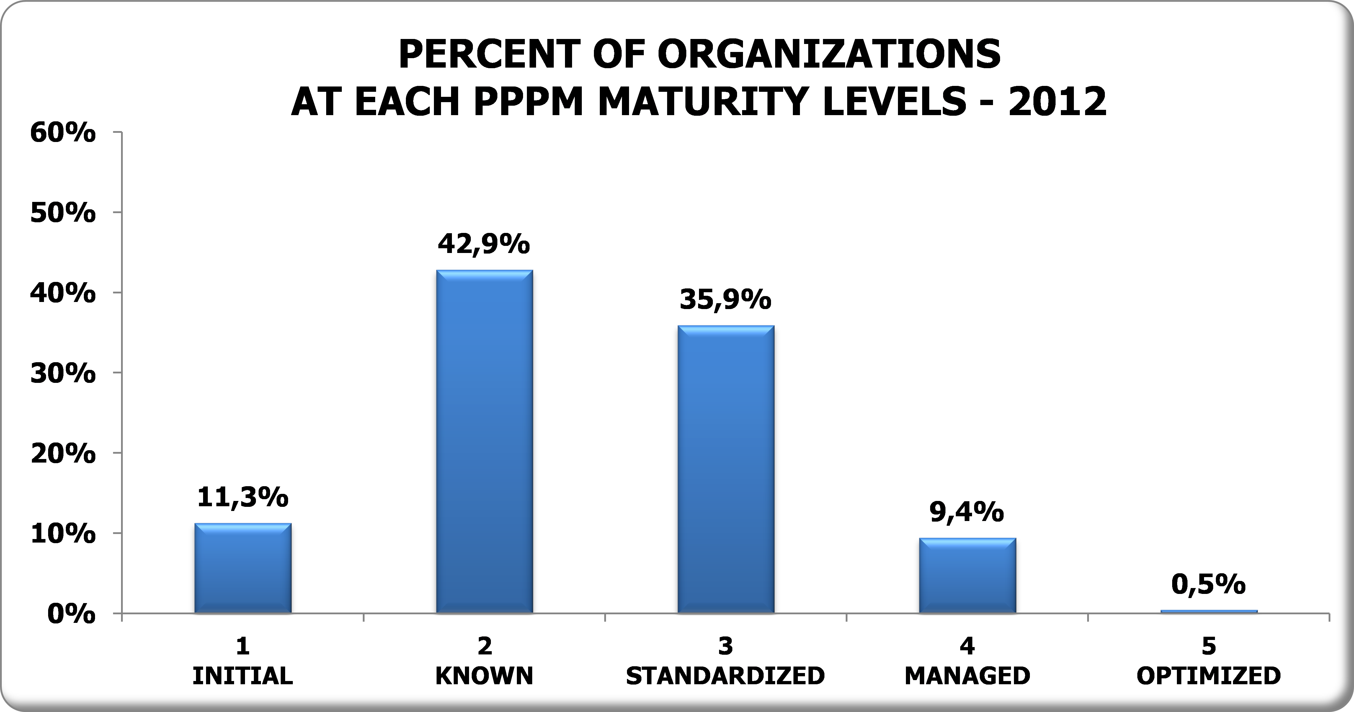 Figure 4: In 2012, only 9.9% of Brazilian organizations were at levels 4 and 5 [8].
